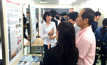 情報デザインの分野で安武伸朗教授による「グラフィックレコーディングの表現手法からアクティブラーニングの成果を考察する」口頭発表のほか、学生が3件の自主活動のプロジェクトについて評価をいただきました。
