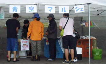 学生たちは刺身や潮汁、海鮮バーベキューをふるまい、ゲーム大会をはじめ、青空マルシェでの商品販売やカフェ「いっぷく亭」といったイベントで祭りを盛り上げ、若い力で地域に活気をもたらしました。また、前日から地曳網の仕掛けの手伝いも行い、過疎・高齢化が進む地域において、学生たちは担い手として重要な存在になっています。