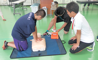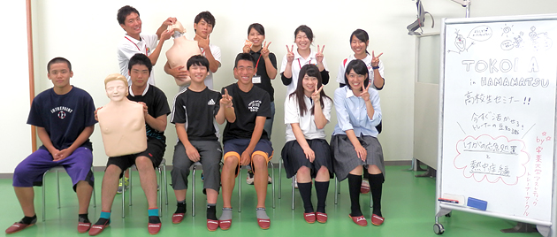講師を務めた学生たちからは、「足関節の捻挫とテーピングでは、一緒に参加された保護者からも質問があり、上手く対応して順調に進められた」、「私たちの経験不足からくる反省もあったが、高校生が熱中症の話や、一次救命処置の実技など、伝えたいことを熱心に聞いて取り組んでくれたことが印象的だった。今回の経験をまた活かしていきたい」等、今後の活動への意気込みが感じられました。