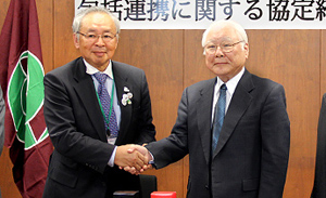 10月13日(火曜日)には、松崎町の斎藤文彦町長と本学西頭德三学長による協定書の調印式が静岡キャンパスにて開催されました。この協定は、本学と松崎町が包括的な連携のもと、産業、文化、教育、環境等の幅広い分野で協力し、双方が有する資源や機能等の有効活用により、地域社会の持続的発展と人材の育成に寄与することを目的としています。