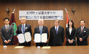 本学では、今年度より地域との連携に関する委員会組織を新設し、地域の活性化に貢献することを目的とした地方自治体等との包括連携に関する協定の締結に向けた取組みをしてきました。本学として初となる包括協定の連携先として、以前より富士キャンパスを中心に連携をしてきた、静岡県賀茂郡松崎町と協定を締結することとなりました。