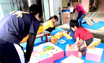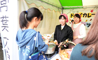 小雨のなか、学生は来場者に積極的に声をかけ、こどもからお年寄りまでさまざまなイベントに参加していただき、学科の学びを紹介しました。