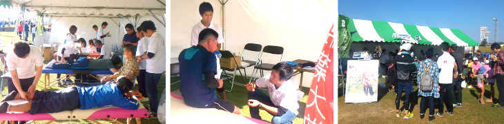 東洋レヂン株式会社(富士市)と協同で行われたこの体験ケア活動に学生は積極的に取り組み、191名のランナーを対応しました。学生からは「最初は緊張したけど、楽しくコミニュケーションしながらケアができた」「先生や先輩たちに教えてもらってランナー(患者さん)との接し方や痛いところがわかるようになった」などの感想が聞かれました。ランナーの方々にも好評で、学生たちは日頃の学習成果を発揮する実践の場として、貴重な体験をすることができました。