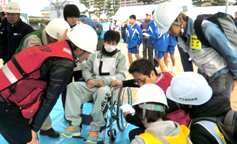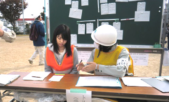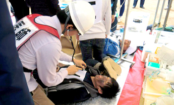 トリアージ受付を担当した田邉実穂さん(理学療法学科2年)は「医療関係者が集まって行う大規模な訓練は初めての体験だった。将来、医療職を目指しているので、災害時に役立つ体験ができた」と感想を述べました。