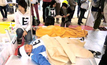 治療エリアのボランティアスタッフとして参加した若林郁弥さん(心身マネジメント学科4年)は「緊急時はさまざまな専門家や行政、自治会、ボランティアが連携して即席のチームを作らなければならず、日頃からの連携の重要性を改めて感じた」と感想を述べました。