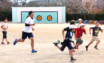 授業の合間の有効活用を考えこの活動に参加した杉山大介さん(心身マネジメント学科3年)は「一緒に遊びながらも安全に配慮したり、大勢の児童との関わり方など学ぶことがたくさんある。将来は、このような経験と自分が今まで取り組んできた陸上競技を活かした運動指導など、子どもたちと接する仕事に就きたい」と話していました。