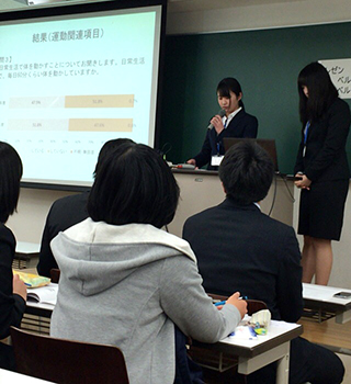 今回、栗田ゼミでは沼津市と共同で約6ヶ月をかけて「沼津市健康増進計画」の中間評価および計画書の見直しに関する検討を行いました。特に今回の研究発表では、平成22年度と平成27年度に沼津市民の20~64歳を対象とした健康関連アンケートの結果より、運動関連項目を中心に分析を行い、沼津市民に向けた運動提供に関する提案について研究発表を実施しました。