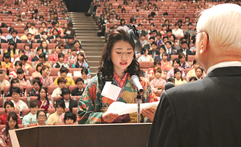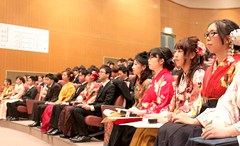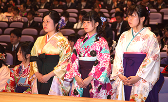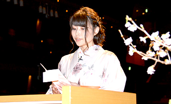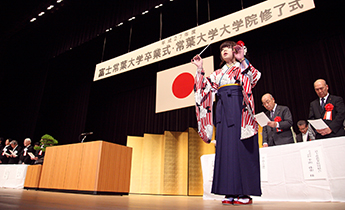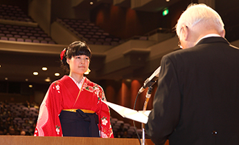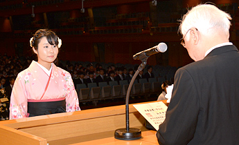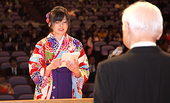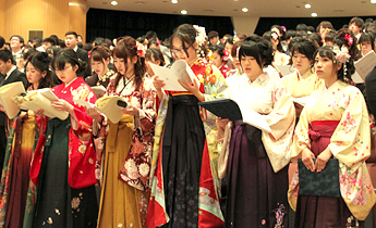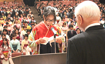 卒業生を代表して、保育学部の和田晴美さんは4年間の学生生活を振り返り「在学中に学んだことを最大限に生かし、これからの保育の問題に取り組む」と決意を話し、続けて「新生常葉大学の後輩たちに常葉の精神をバトンタッチし、新たな教育理念を胸に刻んで社会で活躍したい」と答辞を述べました。