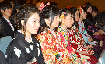 平成27(2015)年度 富士常葉大学卒業式が3月18日(金曜日)、富士市の富士ロゼシアターにて行われ、3学部の学生計252人が新たな一歩を踏み出しました。