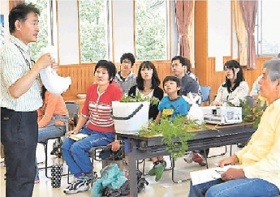 山田教授がクヌギ、コナラ、スダジイなどのドングリを示し、「発芽して木になるパワーを秘めている」と豊かな栄養を説明。試食も行い、焼く、あぶる、砕くなど食べやすくする方法も紹介しました。