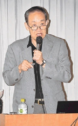第2次世界大戦でナチスドイツに破壊されながら戦後、世界遺産に登録されたポーランドの「ワルシャワ歴史地区」などについて解説。ポーランド人が旧市街のがれきから街を復元した経緯を説明し「復元文化財であるからこそ価値が認められた」と強調しました。国内の事例では、資料によって忠実に復元された神奈川県の「箱根関所」を紹介し、その上で、明治初期まで同東照宮に存在した五重の塔に言及し「久能山に五重の塔があってもよいのではないか」と復元の機運の高まりに期待しました。同顕彰会の会員約70人が耳を傾けました。