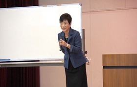 11月26日(水曜日)に浜松市立曳馬中学校で、生徒に思いやりの心を持って他と接することの大切さを理解させる「思いやり集会」が行われ、本学の長谷川真知子教授が講演を行いました。
