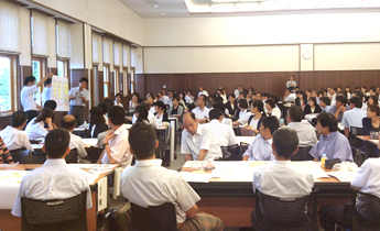 今回の研修会は、その中の取り組みの一つとして、すべての幼稚園および小・中学校で防災リーダーを育成するための研修会です。自然災害や防災教育に関する講義のほか、200名を超える参加者でグループワークを行い、防災教育の進め方や地域との連携について話し合いを行いました。