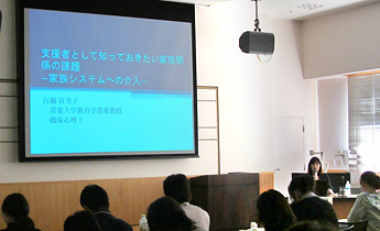 9月19日(土曜日)に静岡市の城東保健福祉センターにて、静岡市自殺予防週間にかかる精神障害者支援技術研修「障害者と高齢者が同居している家族支援における連携を考える支援技術研修会」が行われ、本学教育学部の百瀬容美子准教授が「家族を支えるために知っておきたいこと(家族システムへの介入)~共依存など家族がかかえる問題を知り、適切な支援を行うために」をテーマに講演を行いました。