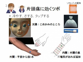 メインテーマをかぜ、頭痛、生理痛とし、サブテーマとして肩こり、眼精疲労を組込み、それぞれのタイプ鑑別方法に加え、対処法として、薬局で販売されているスタンダードな漢方薬や、パイオネックス・Zero(セイリン)、ソマセプト、ソマレゾン(東洋レヂン)、ハペロール、ハペタッチ(皮膚考学研究所)などの鍼灸師の免許を必要としない最新の刺さない鍼と効果的なツボの選び方、指圧方法、食事などを紹介しました。