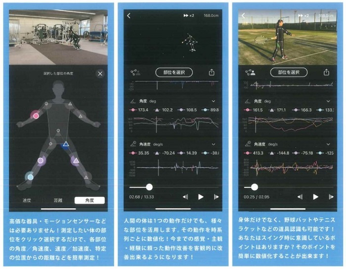 この事業ではAIによるマーカーレス動作分析アプリ「SPLYZA Motion」の測定精度検証を担当し、2022年には「静岡県ICT活用実践普及事業」として、これまでの成果をリーフレット(図2)や動画(https://www.youtube.com/watch?v=uR4_6wMqKek)にまとめました。