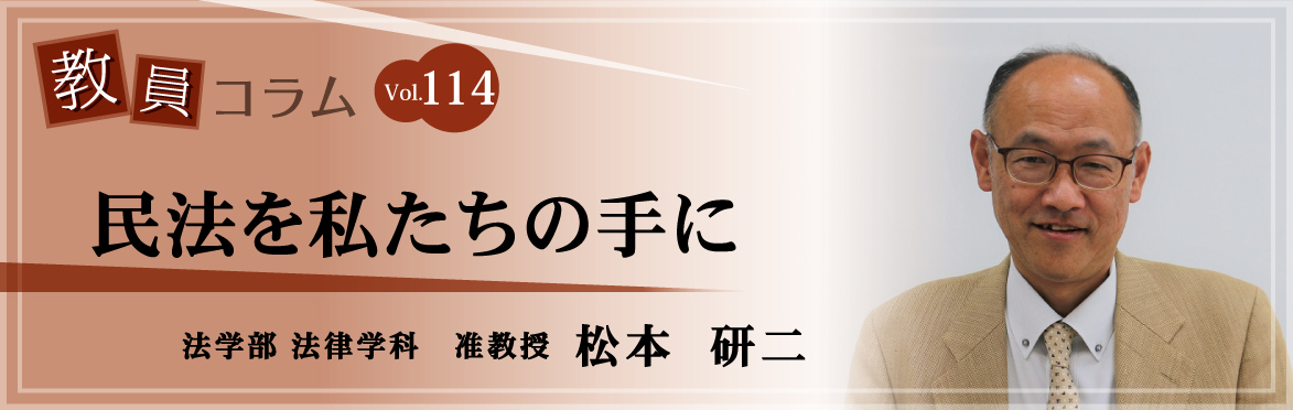私が専攻している分野は、民法です。民法はまさしく「民」の法であり、日常生活の問題を解決する答えの多くが、民法にあります。しかし民法の条文を見ると、いきなり抽象的で例外的な内容が書かれており、その理解には、私たちの通常の思考回路を組み替えなければなりません。その結果、よほど高い学習意欲を持って臨まないと、十分な理解にたどり着けません。