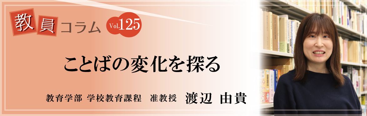 ことばは社会や文化の影響を受けながら、この先も変化していきます。先日授業で、受講者たちに「学生語(学生が大学生活の中で多く用いている語)」の例をあげてもらいました。他大学でも広く通じそうな、いわば定番の学生語にくわえ、専攻名や授業名を略した「国専(国語専攻)・数専(数学専攻)」「人間力(人間力セミナー)」「教心(教育心理学)」等、本学ならではと思われる語も多くあがりました。比較的新しそうな語としては、「学教(学校教育課程、2024年4月に「初等教育課程」から名称変更)」「課金(通学時、料金を追加して新幹線を利用すること)」等がありましたが、いずれも今を生きる学生たちが、時に苦戦しながらも勉学に励む様子が伝わってくることばです。これらの語はこの先も長く使われていくのでしょうか、また新語が生まれることもあるでしょうか。その行く末を見守りたいと思っています。