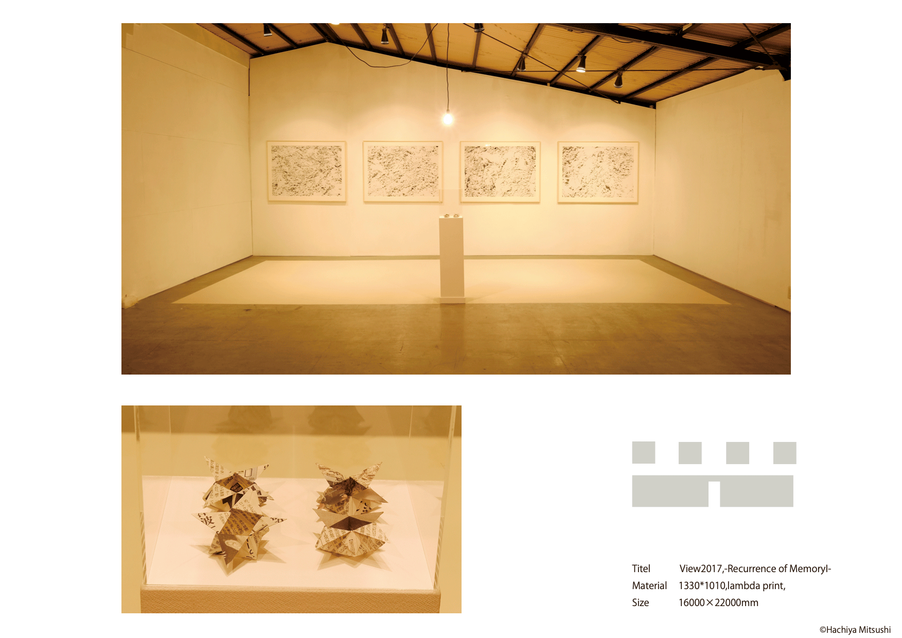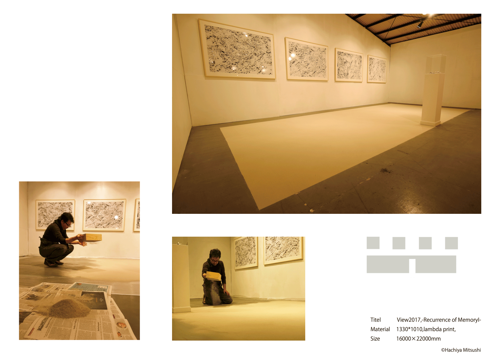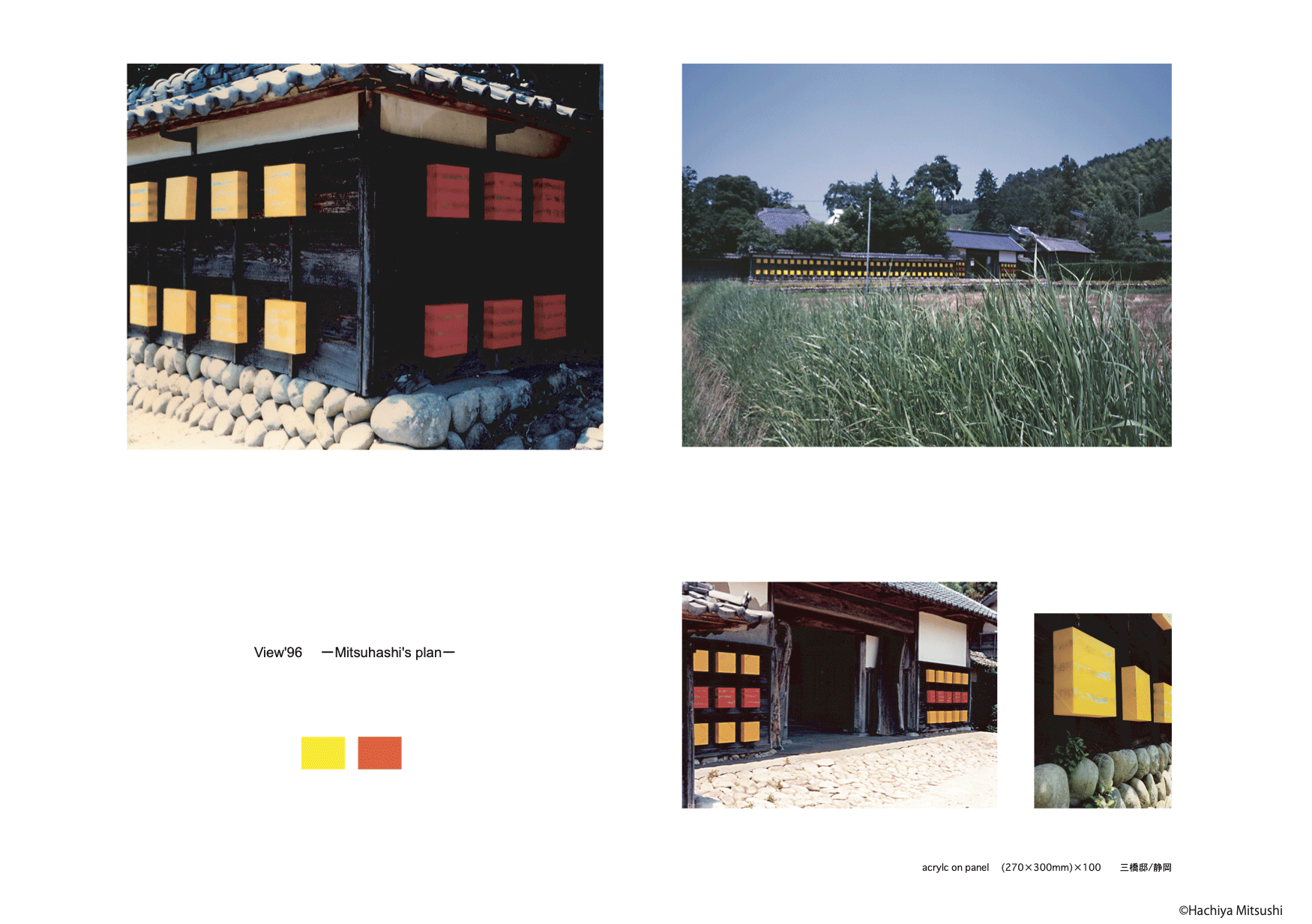 | F | この後のコンセプトを決定づけた作品。自らの足元を大切に、1人でプロジェクトを考案して実行したフィールドインスタレーション。 指導生にサポートしてもらうことが多くなっていく。(30代中頃) |