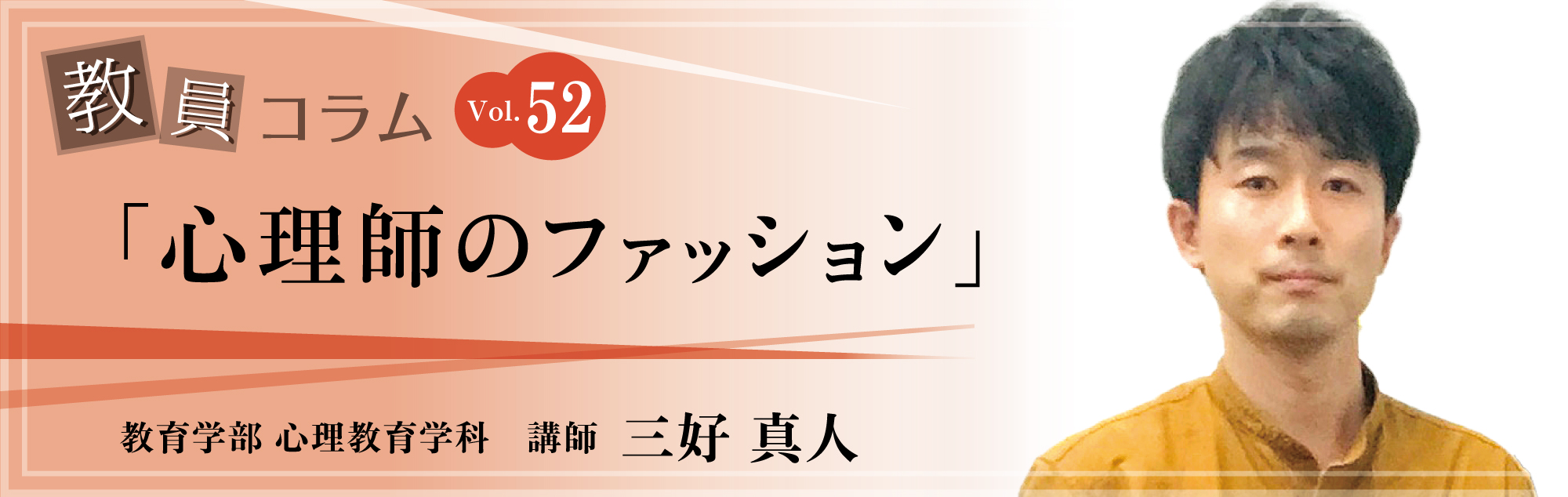 私は、心理学のなかでも「臨床心理学」という心の問題を抱えた人々を支援する学問を専門にしています。患者がカウンセラーに対してどのような印象を持つかということは治療の大事な要素となります。精神科病院で勤務していた際は、白衣を着ればよかったので楽でした。スクールカウンセラーとして勤務した際は、白衣はないので毎回同じ白いシャツとズボンを着ていました。個人的には、毎回同じファッションで患者の前にいたいと思っています。自分の問題を話しにきてくれる方に余分な刺激を与えたくないからです。また、毎回同じファッションで仕事をすることで、自分自身をなるべく同じ精神状態に保つことに寄与するのではないか。そのことで患者の変化に気づきやすくなりたいという思いもあります。ただでさえも、目に見ないものの変化を追いかけていくなかで、目に見える部分はいつも変えずにいた方がいいんじゃないかと思うわけです。