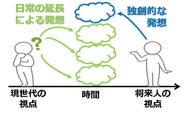 持続可能社会の実現は非常に困難な課題ですが、将来人になりきって考えてみるだけで思わぬ妙案が浮かぶかもしれません。まずは皆さんも、将来の社会の姿や、そこに住む人が何をして何を考え生きるのかをイメージしてみることから試してみてはいかがでしょうか。