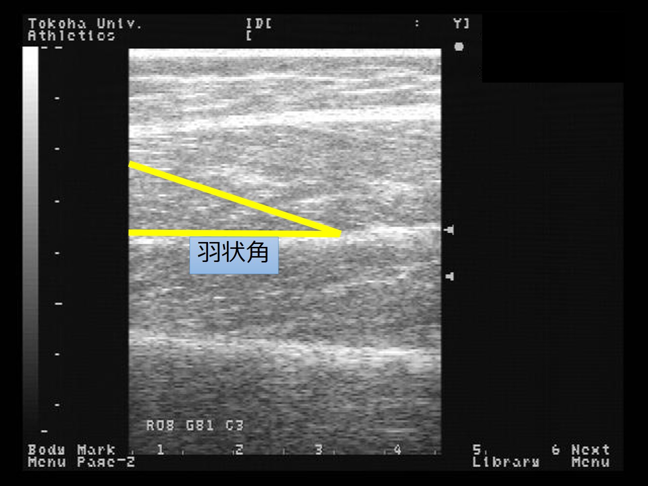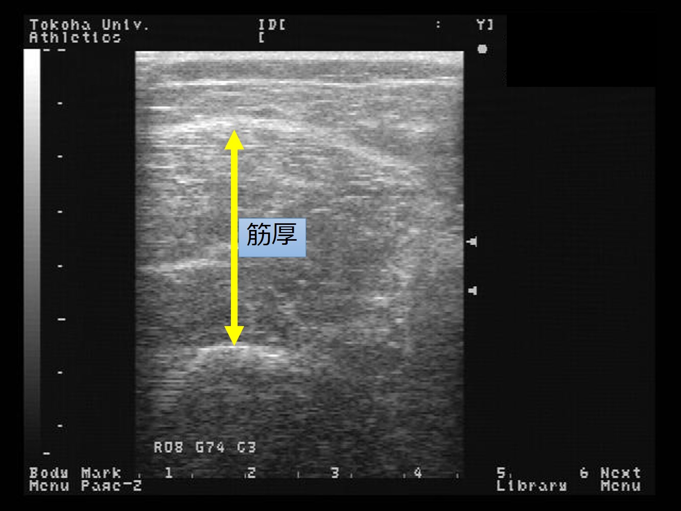 「形は力を産み、力は形を造る」という考え方から、アスリートに必要な骨格筋・腱複合体の形態や量と動作の関係について研究を行っています(骨格筋の筋厚、筋線維の羽状角、骨格筋の硬さ、動作分析[図1~4])。