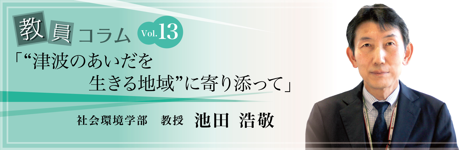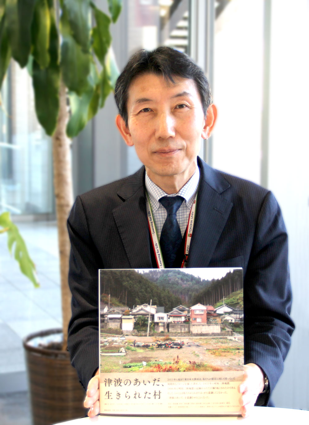 私の専門は“防災”や“まちづくり”です。東日本大震災のちょうど1年後の2012年3月から、縁あって津波で大きな被害を受けた岩手県大船渡市の綾里(りょうり)という地域で、復興まちづくりの支援、津波避難に関する調査研究、津波の教訓を次の世代に継承していく活動の支援、将来の地域の復興を担う人材育成支援などの活動を7年間行ってきました。最初は、地域の人たちへの聞き取り調査や、住民ワークショップなどを通じて、学生たちと一緒に、地域の人達が自分の家を、自分の仕事を、自分たちまちを、今、そして10年~20年後にどうしていきたいのか、要望や思いを聞き取りました。その結果を基に、地形模型やフォト・モンタージュという手法を使いながら、具体的にどのようなまちづくりをしたいのか、住民の方たちに参加してもらいながら計画案を創って行きました。次には、その”計画“を実現させるための方法論を関係者の方々と考え実行して行きました。市役所の関係部署に説明し協議をしました。必要な行政予算を確保するために市議会議員の方々にも協力を仰ぎ、また、民間の事業者や地権者の合意が必要な場合はそうした関係者の方々にも協力を仰ぎました。しかし、器としての”まち“だけが復興しても、そこに住み・働く”人“がいなければ、地域の復興は果たせません。そこで、地元の綾里中学校の3年生を対象とした復興人材育成ワークショップを学生たちと共に6年間継続して行いました。この話に興味を持たれた方は『津波のあいだ、生きられた村』(鹿島出版会、2019.9)を是非お読みください。ここでは書ききれなかった津波避難の研究や教訓の継承等についても書いてあります。さらに興味を持たれた方は、社会環境学部あるいは大学院環境防災研究科の門を叩いてください。