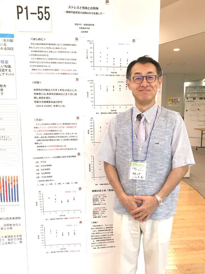 以前の研究(臨床の場)は、患者さんのことを中心に展開していましたが、教員になってからは、学生教育で“疑問”に思ったことを“解決”するための「研究」が主となりました。“実技系演習科目の学び方”や“学び合いの教育方法”などから始まり、最近では、学生が臨床の場で感じる“急性ストレスについて”研究しています。