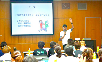 掛川市との包括連携協定にもとづき、7月6日(水曜日)に掛川市総合体育館「さんりーな」において本学保健医療学部理学療法学科の山本武助教が、掛川市のスポーツ指導者50名を対象に「実践で使えるウォーミングアップ」について講義と実技を行いました。