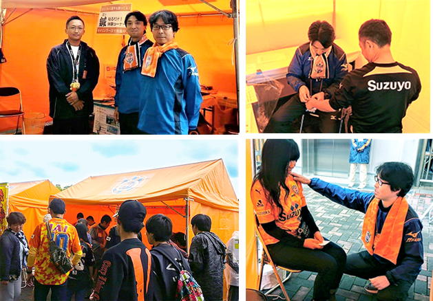 10月14日(日曜日)にJリーグ 清水エスパルスvsジュビロ磐田の試合会場であるIAIスタジアム日本平にて、健康プロデュース学部健康鍼灸学科の中澤寛元教授と沢崎健太准教授がセイリン株式会社(静岡市清水区にある鍼・医療機器メーカー)の鍼体験ブースのスタッフとして活動しました。 静岡ダービーマッチデーだったこともあり、会場は満員のサポーターが訪れました。鍼体験ブースの来場者も約200名と大盛況で、鍼灸をPR する良い機会となりました。 関連リンク 教員を知ろう! 中澤寛元教授についての情報はこちら 教員を知ろう! 沢崎健太准教授についての情報はこちら