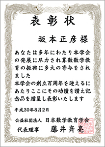 公益社団法人 日本数学教育学会より表彰されました/坂本正彦准教授
