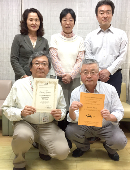 この研究は、常葉大学健康科学部 前野竜太郎准教授(写真前列左)、静岡県立大学看護学部講師前野真由美(研究代表、同後列中央)、同大学国際関係学部 高畑幸教授、えのもと循環器科・内科 榎本信雄医師(同前列右)、静岡市助産師会 北島和子助産師(同後列左)、静岡済生会総合病院地域医療センター 岩﨑圭介医療ソーシャルワーカー(同右)を中心に進められている科研費による共同研究です(基盤研究B)。この研究のフィールドは、ボランティア団体「外国人のための無料健康相談と検診会」です。ここでは、「同じ地域に住む人々が、同じように健康に」を合言葉に毎年1回開催され、今年で21回目となりました。ボランティアとして、本学の外国語学部、健康科学部、県立大学看護学部、国際関係学部、短期大学部の教員、学生、院生らが参加しています。これからも、地域の保健医療関係者のみならず、他分野の研究者、また、ボランティア団体関係者、外国人等と、在住外国人を尊重したケアについて考えていきたいと思います。