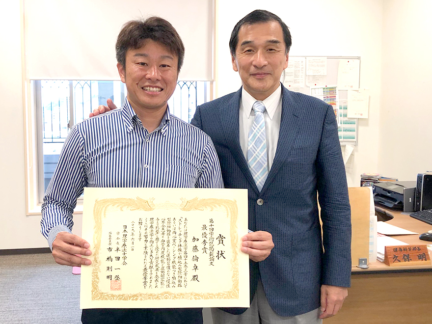 健康科学部静岡理学療法学科の加藤倫卓准教授が執筆した論文、”ストレッチング体操が植込み型除細動器あるいは両心室ペーシング機能つき植込み型除細動器を装着した運動習慣のない慢性心不全患者の血管内皮機能と運動耐容能に与える影響”が、日本理学療法士学会の学術誌「理学療法学」において第10回学術誌優秀論文最優秀賞を受賞しました。 関連リンク 教員を知ろう! 加藤倫卓准教授についての情報はこちら
