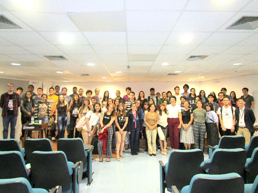 8月26日(月曜日)に、本学外国語学部の江口佳子准教授が、ブラジリア大学文学部外国語学科(ポルトガル語専攻科・日本語専攻科)において、 “O estudo sobre a cultura brasileira na universidade no Japão”(日本の大学におけるブラジル文化の学びについて)、“A pesquisa e a tradução das obras Feliz Ano Novo, de Rubem Fonseca e As meninas, de Lygia Fagundes Telles”(フーベン・フォンセッカ『あけましておめでとう』とリジア・ファグンジス・テーリス『女の子たち』の研究と翻訳について)と題して、二つの講演を行いました。会場からは、ブラジルに対する日本の大学生の関心や、文化的相違に起因するポルトガル語から日本語への翻訳の難しさについて質問がありました。
