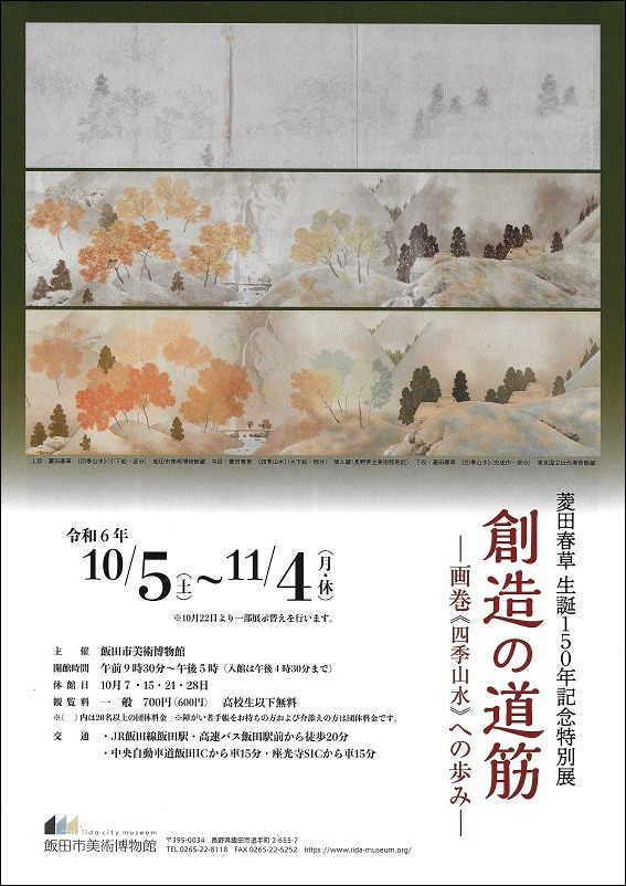造形学部 蜂谷充志教授が館長を務める、飯田市美術博物館に於いて、菱田春草 生誕150年記念特別展『創造の道筋 ー画巻《四季山水》への歩みー』展が開催されています。