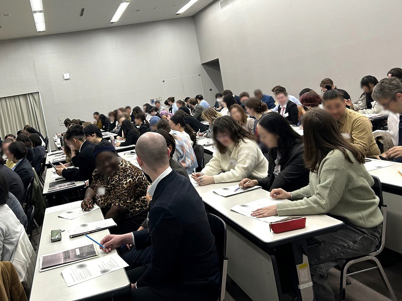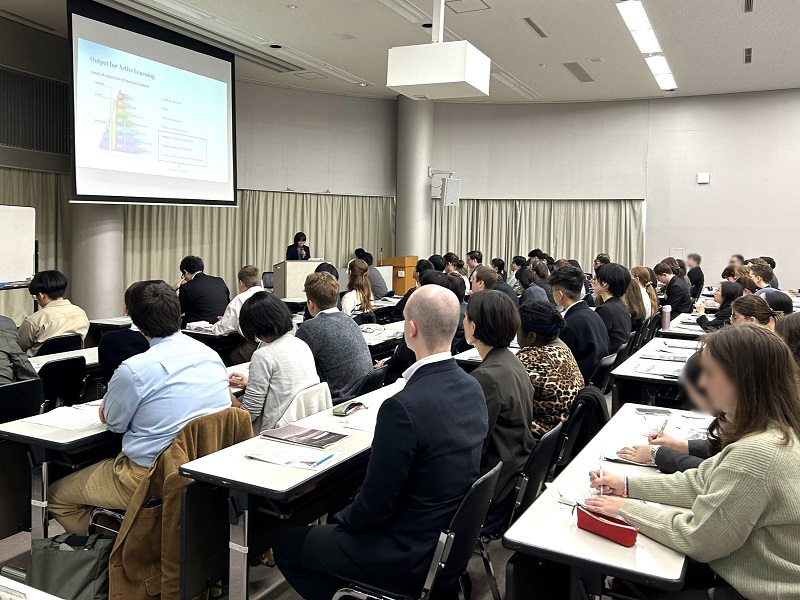 13日(水曜日)には、英語と日本語を比較対照しながら言語を学ぶ活動を取り入れた分科会、14日(木曜日)には全体での講演を担当しました。JETプログラム参加外国語指導助手88名、日本人外国語(英語)担当教員75名、外国語(英語)担当指導主事等9名の172名が参加し、一層効果的な語学指導ができるよう必要な知識・指導技術等を習得し、外国語教育の充実を図ることを目的として熱心に研修に取り組みました。