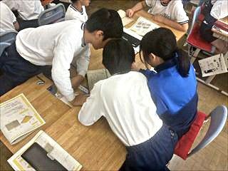 くずし字で書かれた『竹取物語』をみんなで解読した後、実際に江戸時代の本に触ってもらいました。常葉大学の教員・学生・橘小学校の教員も授業を参観しました。参観した皆様とも意見交換しながら、古典教育の研究に活かしていきます。