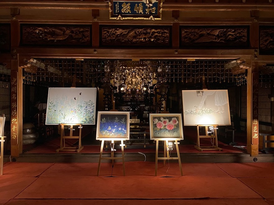 10月29日(土曜日)・30日(日曜日)に、藤枝市で行われた「みちゆかし 秋の芸術祭@了善寺」にて、保育科教員木下藍(作家名いのうえあい)による日本画作品展示とワークショップを行いました。