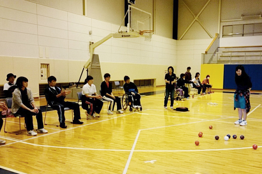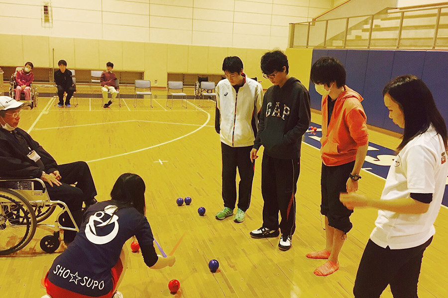 私たちは理学療法士をめざしています。将来、障がいがある方とも関わると思いますが、学生生活ではあまり接点がないと感じていたところ、障がい者スポーツサポートクラブのことを知りました。このクラブでは、障がい者スポーツ「ボッチャ」の競技審判や大会スタッフなどの活動をしています。