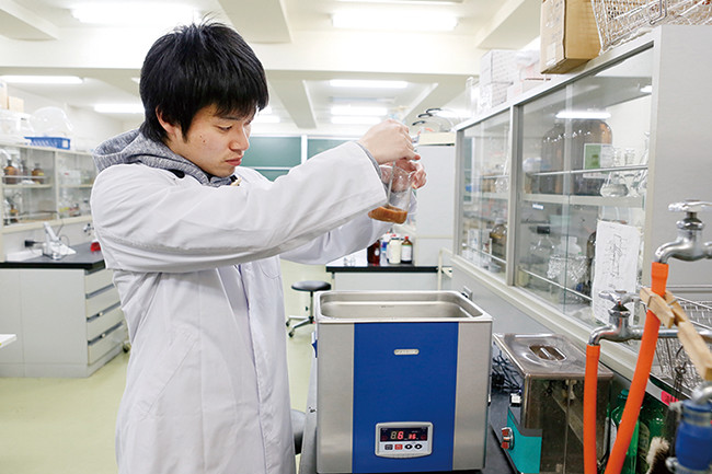 近年の林業の低迷などにより、豊かさが失われつつある富士ヒノキ。ヒノキには抗菌・抗カビ活性や防虫効果などの成分や芳香成分が含まれていることから、社会環境学部では、抽出液を利用した新商品の開発を計画。研究を重ね、ヒノキの香りと天然成分による抗菌活性を特長とする新たな抗菌性ウエットティッシュの試作品が完成しました。商品化により利用が進めば、森林環境の保全だけでなく、地域資源による地域活性化への貢献にもなります。