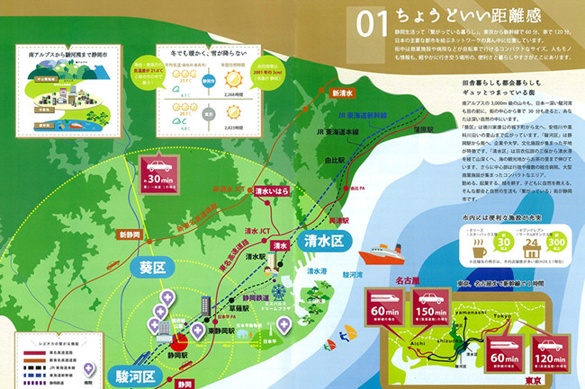 造形学部の学生が静岡市と連携し、東京からの移住者に向けたコミュニケーションを目的としたパンフレットの企画・制作を行いました。学生は、UX(顧客満足体験)のデザイン理論を踏まえて、都内でのインタビュー、市内に移り住んだシニアの方や起業した女性の方々への取材を通して静岡市で暮らす魅力をまとめました。パンフレットは、東京の静岡市移住支援センターはじめ、多くの移住関連のイベントで活用されています。