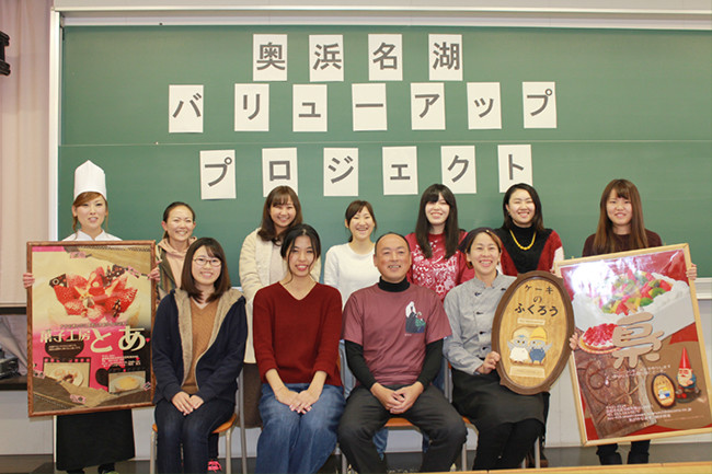 奥浜名湖商工会との地域活性化プロジェクトの一環として、経営学部の学生が地元の菓子店や飲食店など4企業とNHK大河ドラマ「おんな城主 直虎」にちなんだ商品開発に取り組みました。学生は実地調査やヒアリング、新商品プレゼンテーションを経て新商品が完成。直虎が活躍した時代に地域で栽培されていた赤米を使った焼き菓子「直虎のしっぽ」など4種のお菓子が商品化されました。学生の手で地元商店街を盛り上げています。