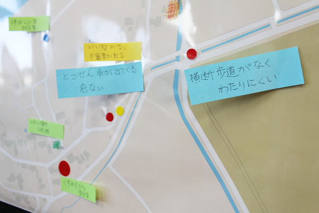 健康プロデュース学部心身マネジメント学科の学生とキャンパス近隣の都田小学校の児童が共同で「都田安心安全マップ」づくりを行いました。学生は小学校区で児童と一緒にまち歩きをし、防災・防犯の視点でチェックした危険個所を写真やビデオで確認しながら、地図に書き込んでいきました。安心・安全マップは、都田小学校区に全戸配布し、地域防犯に役立ててもらうとともに、地域ぐるみで安心安全なまちづくり、災害に強いまちづくりをめざします。