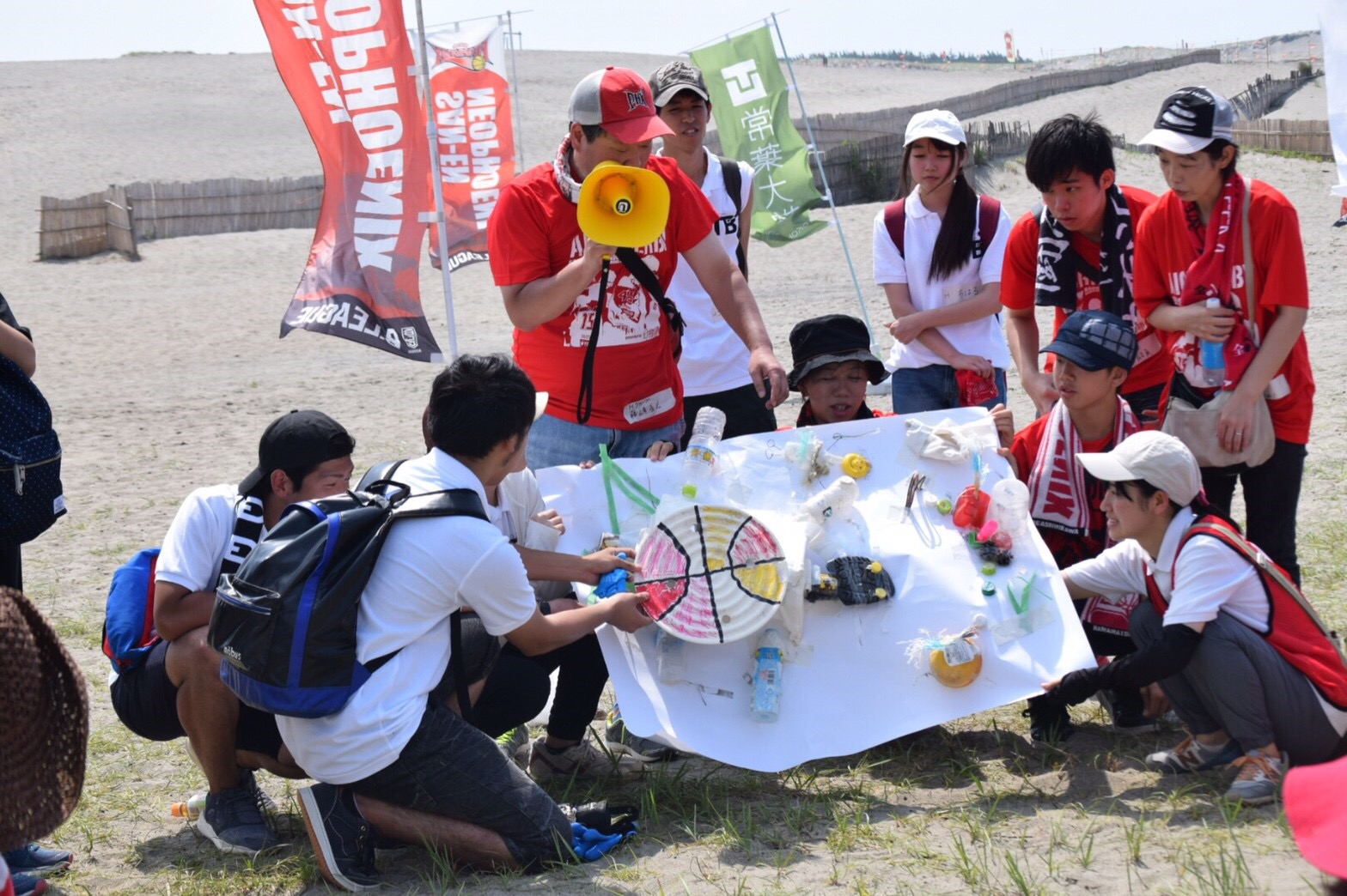 ボランティアサークル「Thunder Birds」が浜松市の中田島砂丘の清掃とイベントを実施。これは「Thunder Birds」とプロバスケットボールチーム「三遠ネオフェニックス」との共同開催で2014年から実施している活動「フェニトコプロジェクト」として行われました。