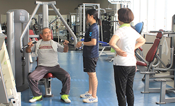 地域の方を対象に「いきいき運動教室」を開催。健康運動指導士の資格を取得するために必要な健康産業施設等現場実習の一環として行っており、学生のアドバイスを参加者の健康維持に役立てていただくことを目的としています。全6回のこの講座では、初回に握力や柔軟性など5項目の体力測定とカウンセリングを行い、参加者の最終目標や既往歴など体の状態を知り、参加者それぞれの運動プログラムを作成します。参加者は、学生とプログラムに沿って運動を行い、最終回に再度体力測定をし、初回時との比較を行います。