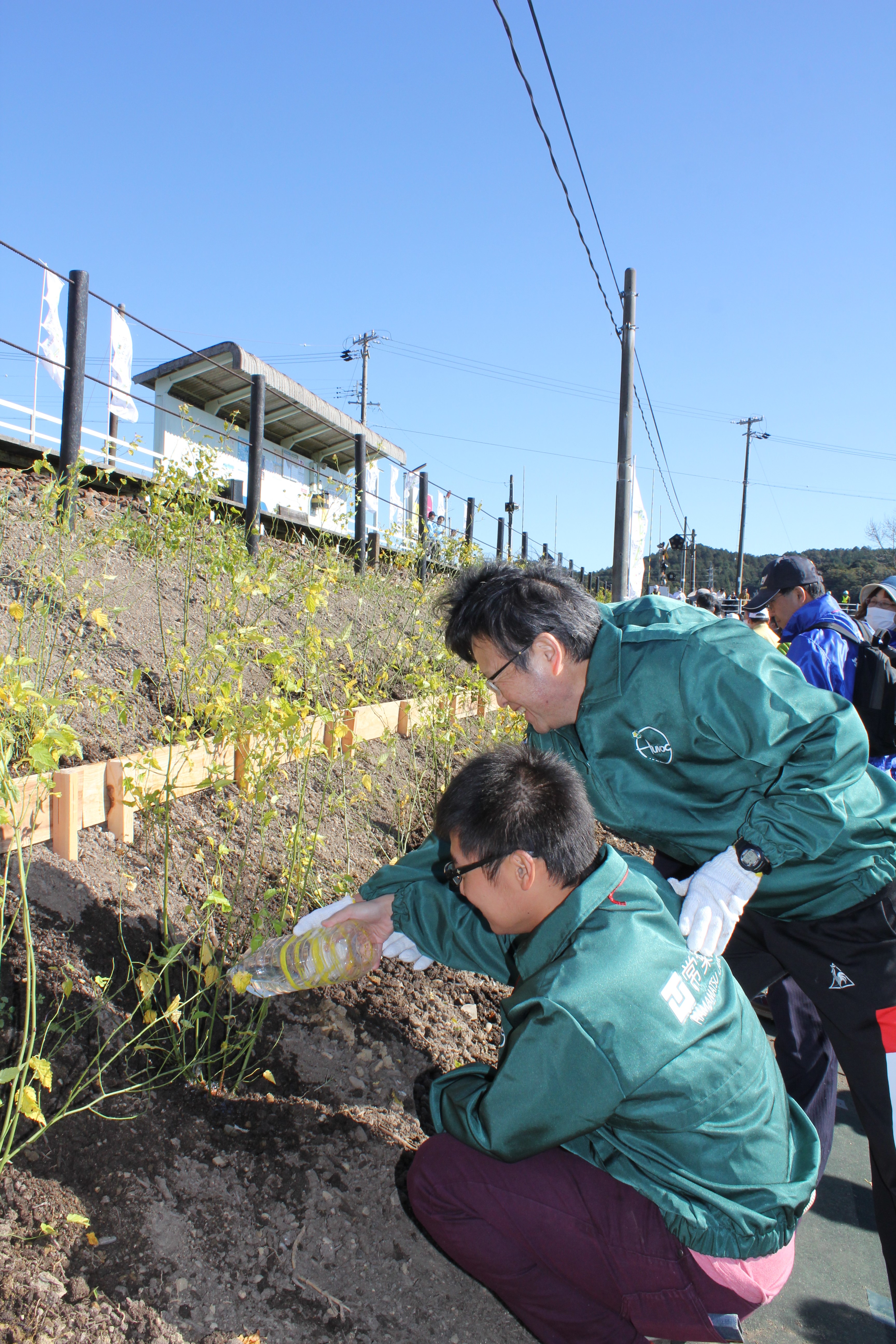 天浜線沿線に花を植え地域振興につなげる「天浜線 人と時代をつなぐ花のリレー・プロジェクト」が始動し、日頃より自然を活かした学びをしている健康プロデュース学部こども健康学科の学生らが参加。天竜浜名湖鉄道(通称「天浜線」)の常葉大学前駅沿線に「ヤマブキ」を植樹しました。 鉄道の魅力を向上させ、観光振興と地域活性化につなげることが狙いのプロジェクト。今後はこども健康学科の学生を中心に、地域の貴重な資源として大切に管理をしていきます。