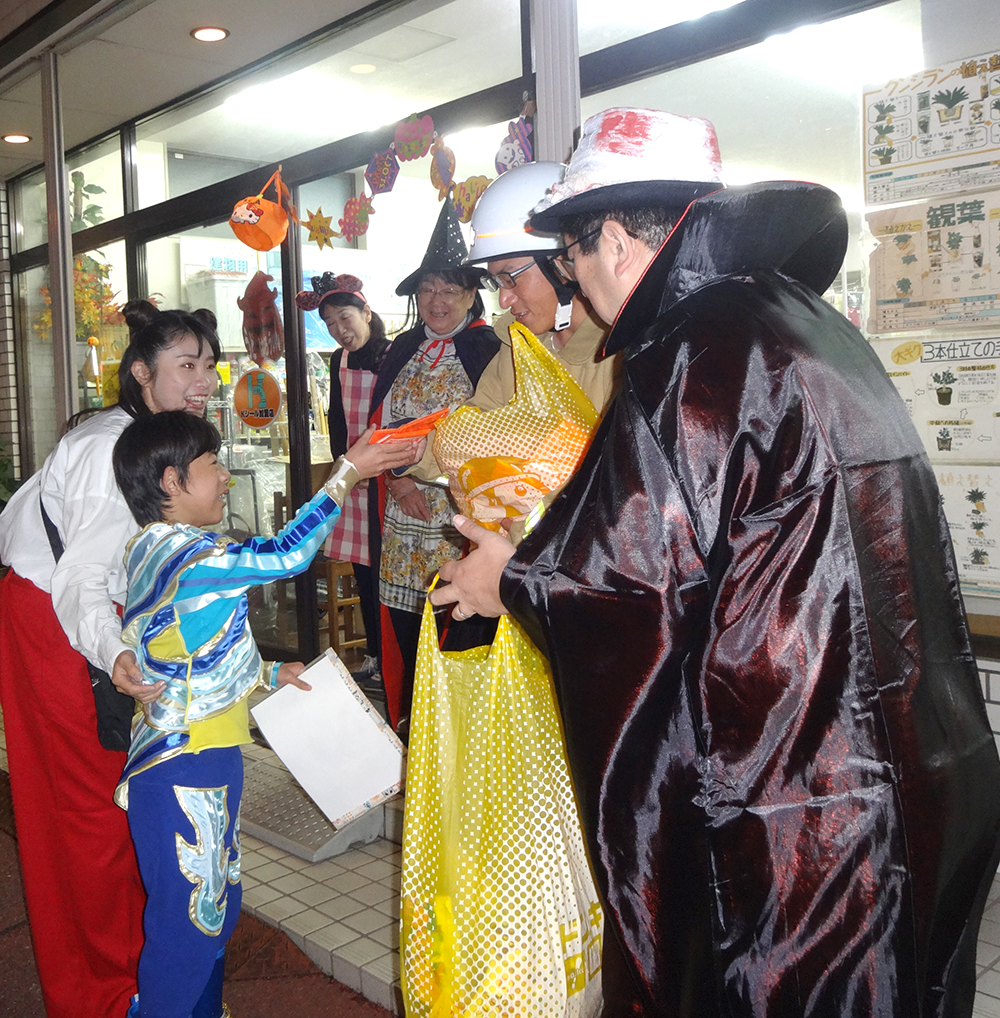 「体のマヒがあっても着脱しやすい」という点に留意して学生が製作した衣装で、対象児はハロウィンイベントに参加。大好きなキャラクターの衣装を着て、喜んだ様子を見せてくれました。