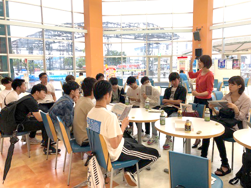 みほしるべ(三保松原文化創造センター)にて三保松原の2種類の映像を鑑賞、展示エリアやミュージアムショップの視察を行いました。続いて清水港エリア、エスパルスドリームプラザへ移動し、その周辺での視察を行いました。フィールド調査の結果は、ワークショップを開催し、現状、課題、アイデア創出を行い、全員で共有しました。