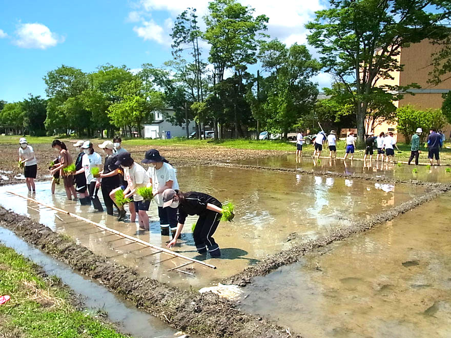 教育学部生涯学習学科、造形学部の学生が、登呂遺跡にある弥生時代の水田を復元するプロジェクトに参加。1年を通して、田植え、草取り、稲刈り、脱穀、もみすりを継続して行いました。また、県立美術館のボランティアの皆さんとともに、別の文化財敷地内にある茶畑の除草と肥料やり作業も実施しました。 地元にある文化財や博物館と市民の皆さんとのつながりを学びました。