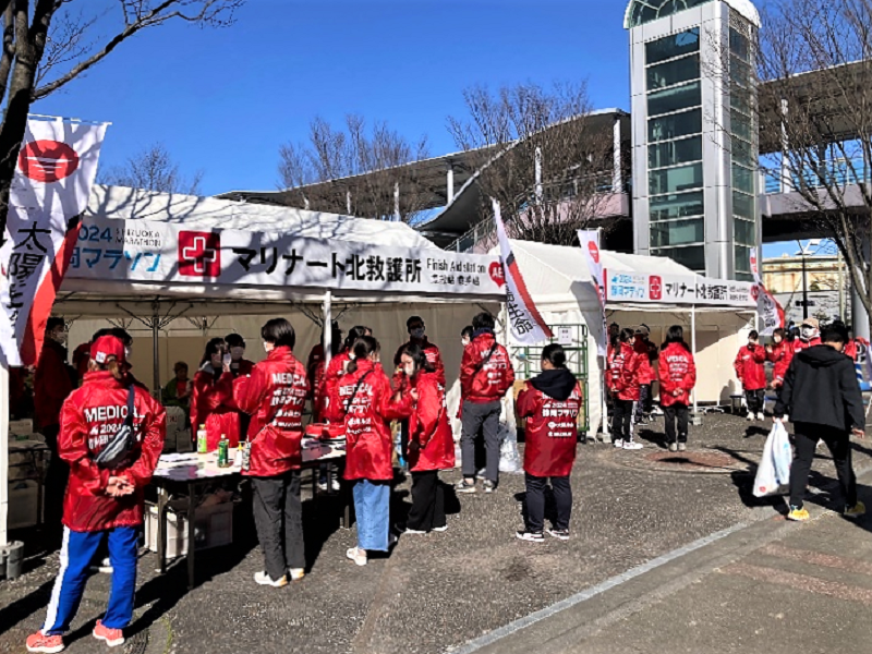『静岡マラソン2024』に、健康科学部 静岡理学療法学科の学生が学生ボランティアとして参加し、体調不良者の搬送や会場で活動されている医療スタッフの補助を行いました。
